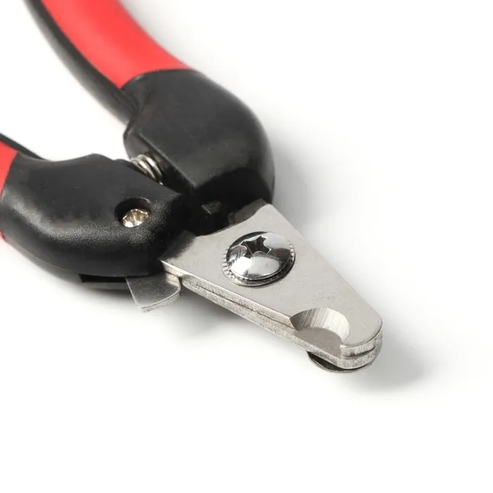 - Боковой когтерез с отверстием 11 мм: Подходит для средних и крупных когтей. Лезвие подходит сбоку, что удобно при работе с загнутыми или плотными когтями. Ограничитель не даёт перерезать живое – безопасность при каждом движении.