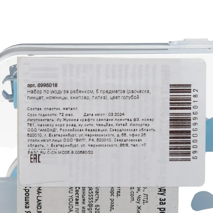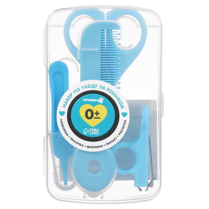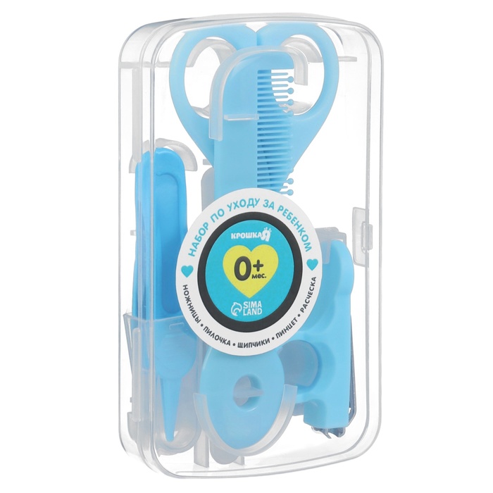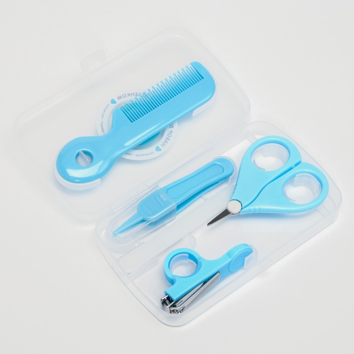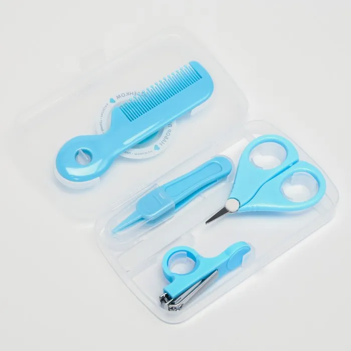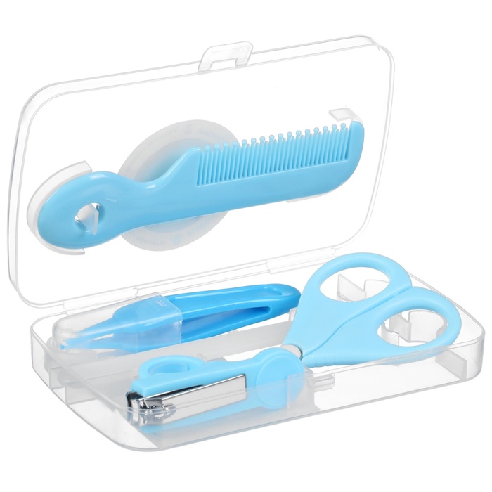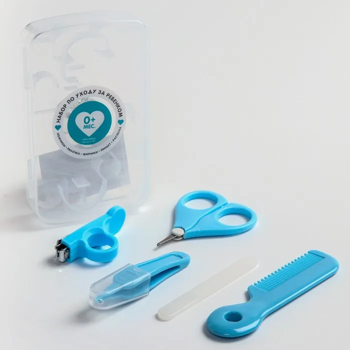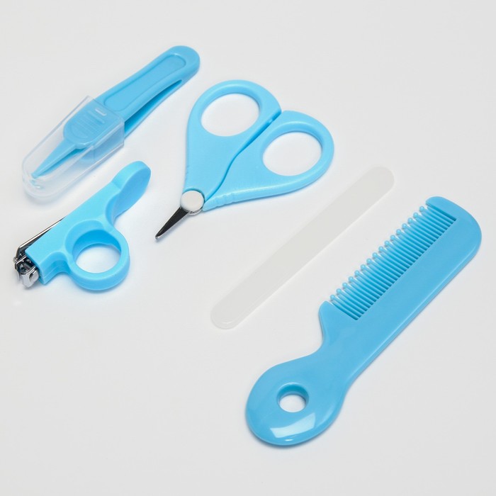 Набор по уходу за ребенком, 5 предметов: расческа, пинцет, ножницы, книпсер, пилка, голубой — Характеристики