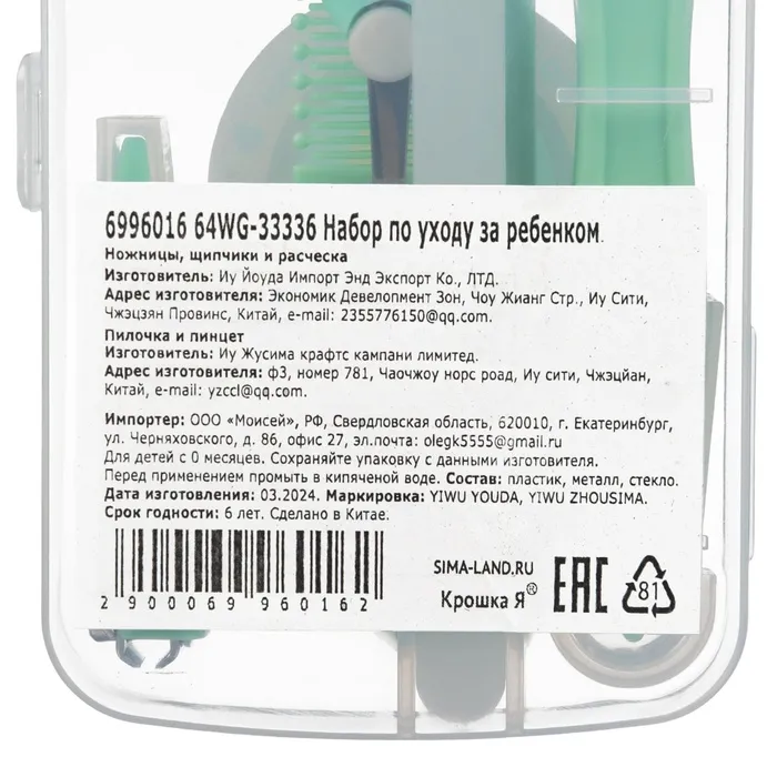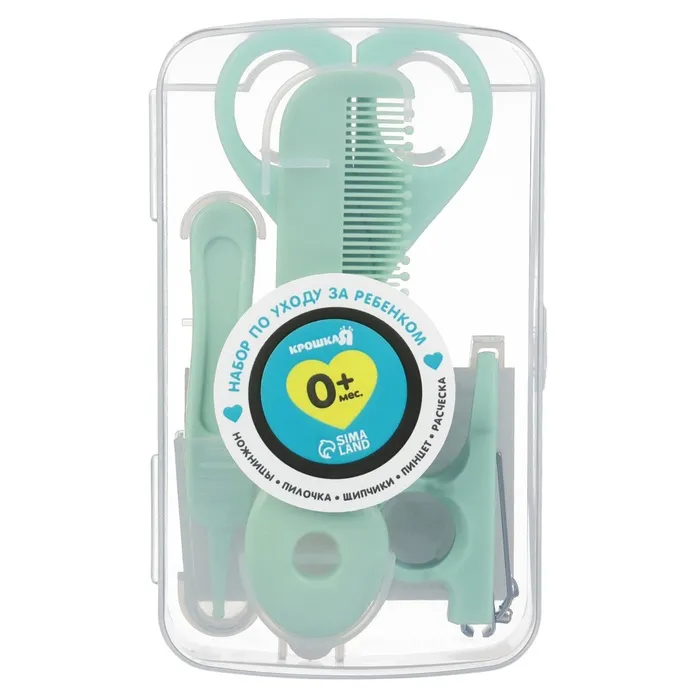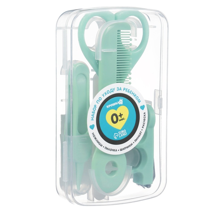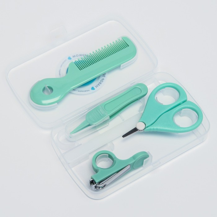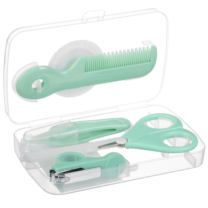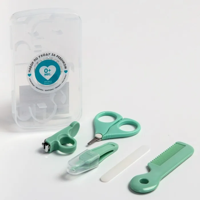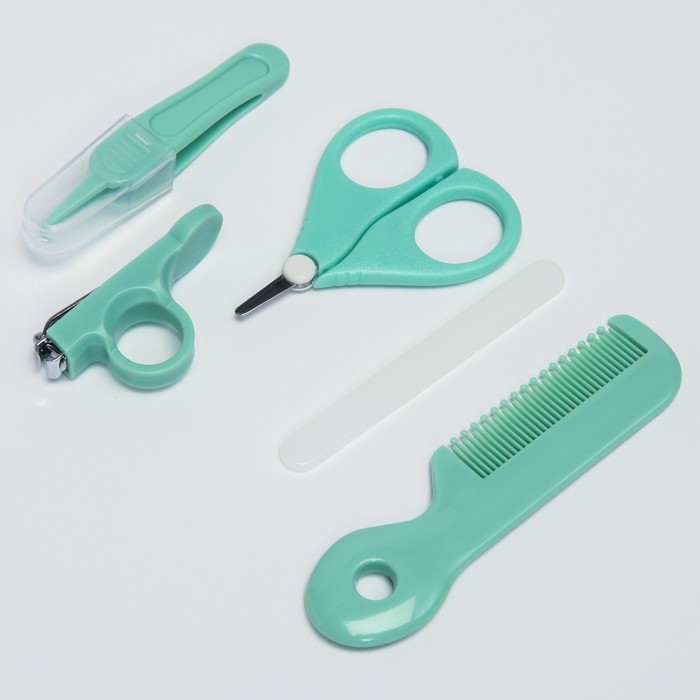 Набор по уходу за ребенком, 5 предметов: расческа, пинцет, ножницы, книпсер, пилка, зеленый — Характеристики