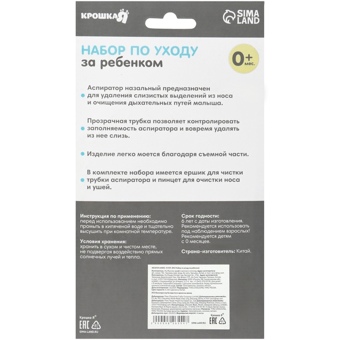 Набор по уходу за ребенком: аспиратор, щеточка, пинцет — Характеристики
