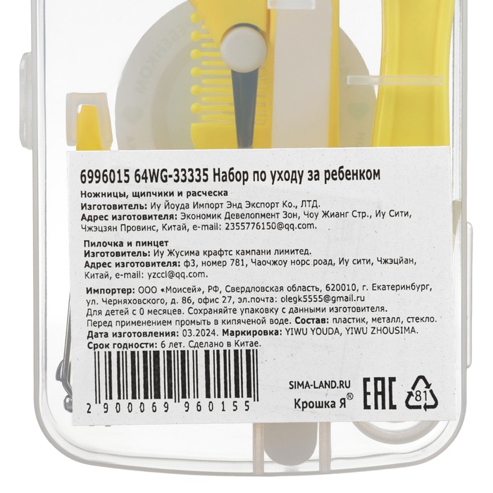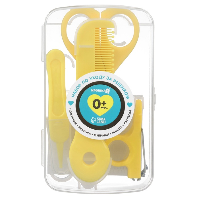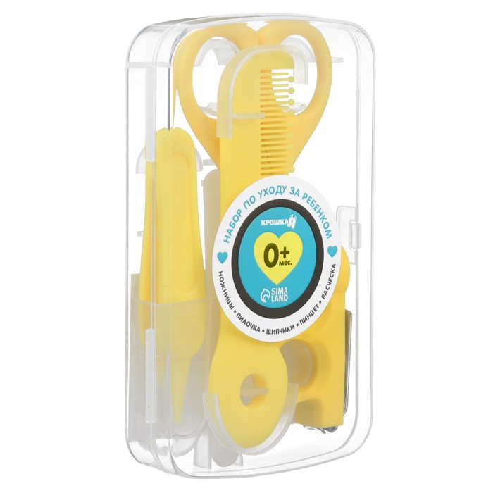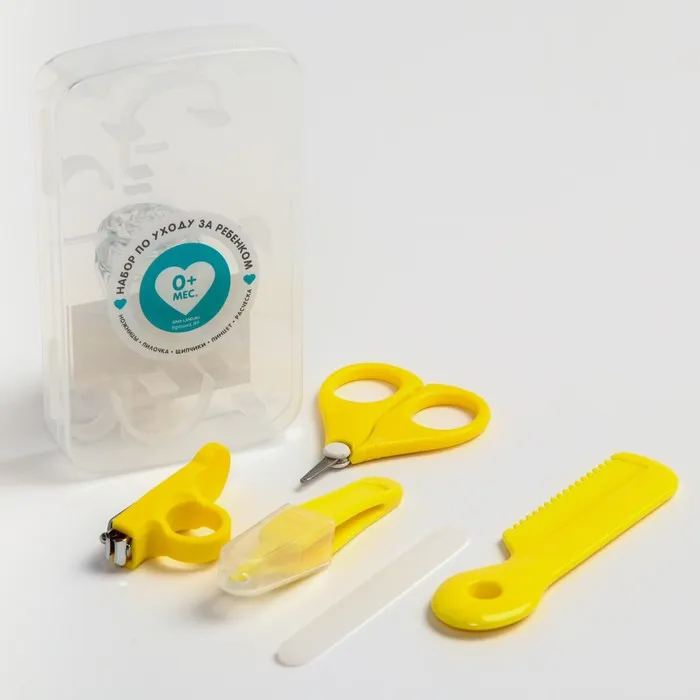 Набор по уходу за ребенком Крошка Я, 5 предметов - расческа, пинцет, ножницы, книпсер, пилка, желтый — Характеристики