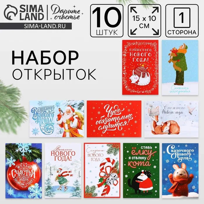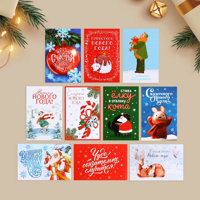 Набор почтовых карточек «Счастливый Новый год», 10 штук, 10×15 см