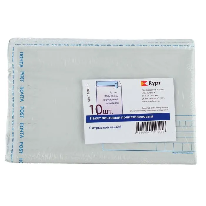 Набор почтовых пакетов №5, Е4 280 х 380 мм, поле "Кому-куда", полиэтилен 65 г/м2, 10 штук — Характеристики