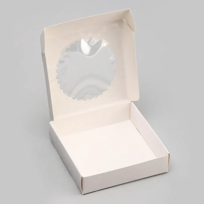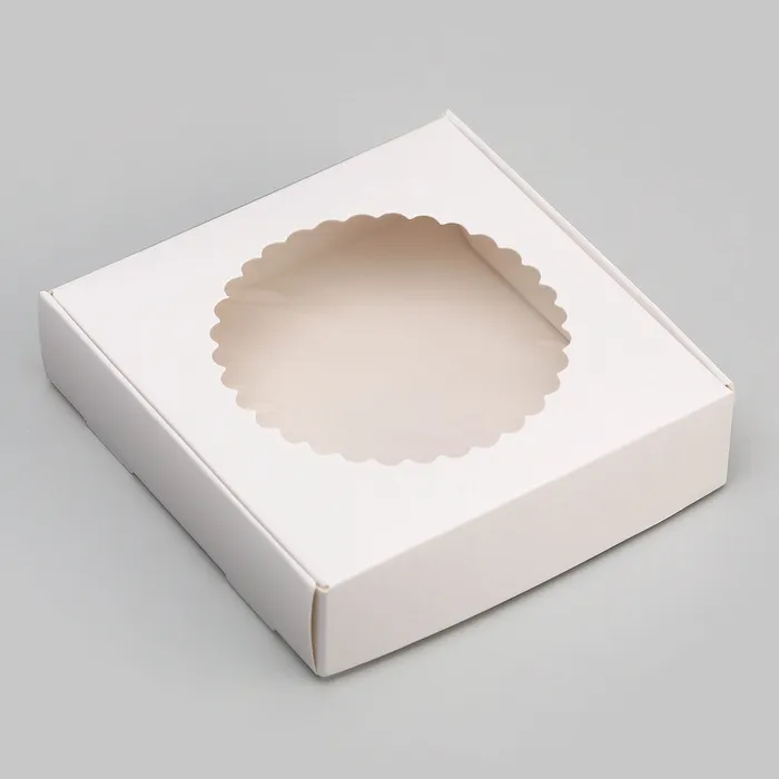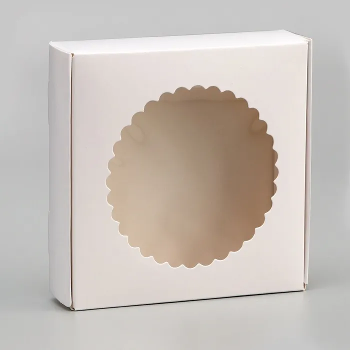 Сборная подарочная коробка с окошком — это стильное и практичное решение для упаковки небольших подарков или сладостей. Её лаконичный белый цвет и аккуратное окошко создают элегантный вид, подчёркивающий содержимое. Коробка идеально подходит для печенья, пирожных или небольших сувениров, делая ваш подарок запоминающимся.