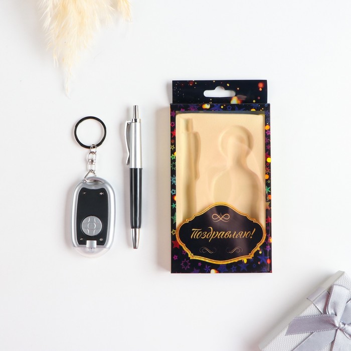 Набор подарочный 2 в 1, ручка, фонарик черный — Характеристики