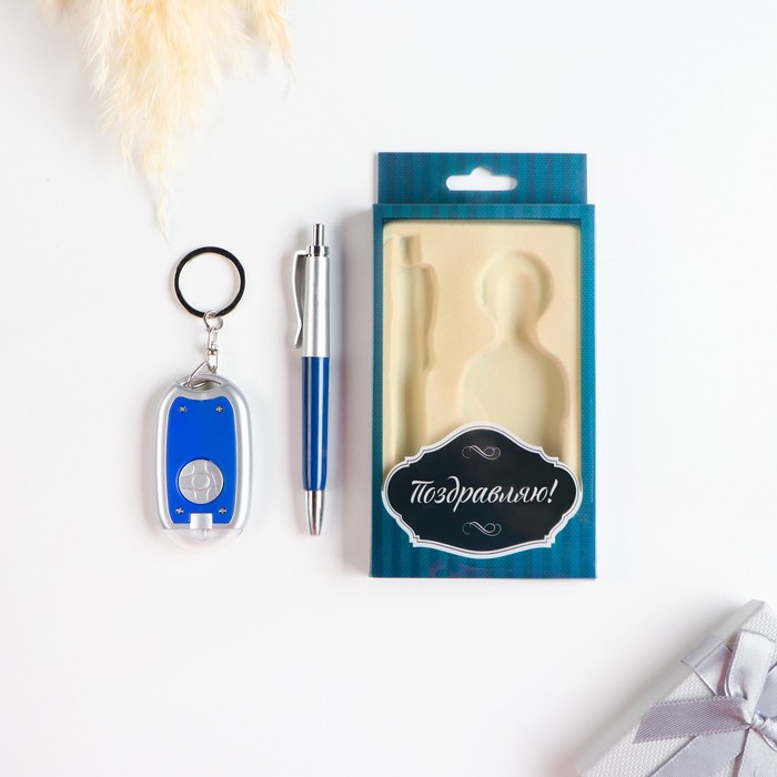 Набор подарочный 2 в 1, ручка, фонарик синий, МИКС