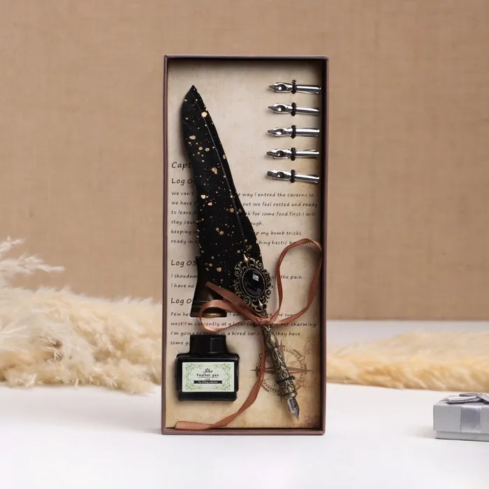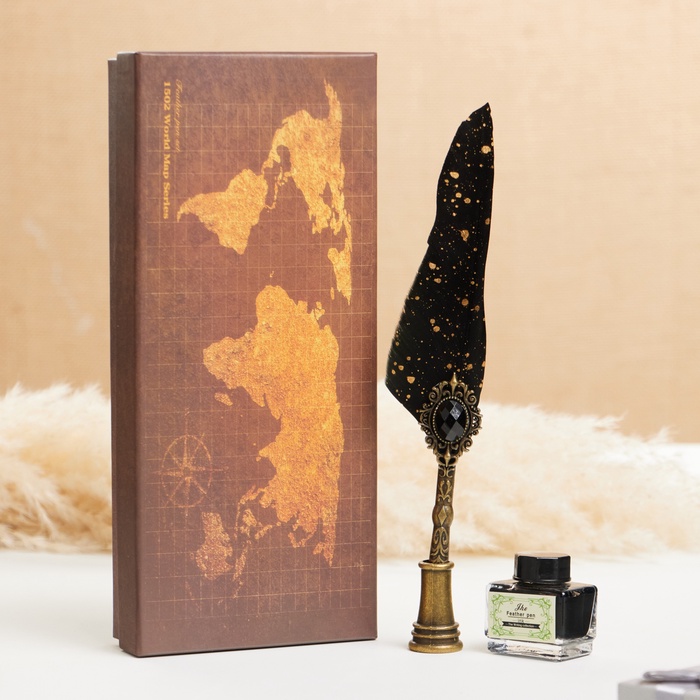Набор подарочный 3 в 1 «Артефакт»: перьевая ручка на подставке, чернила, наконечники, черный — Характеристики