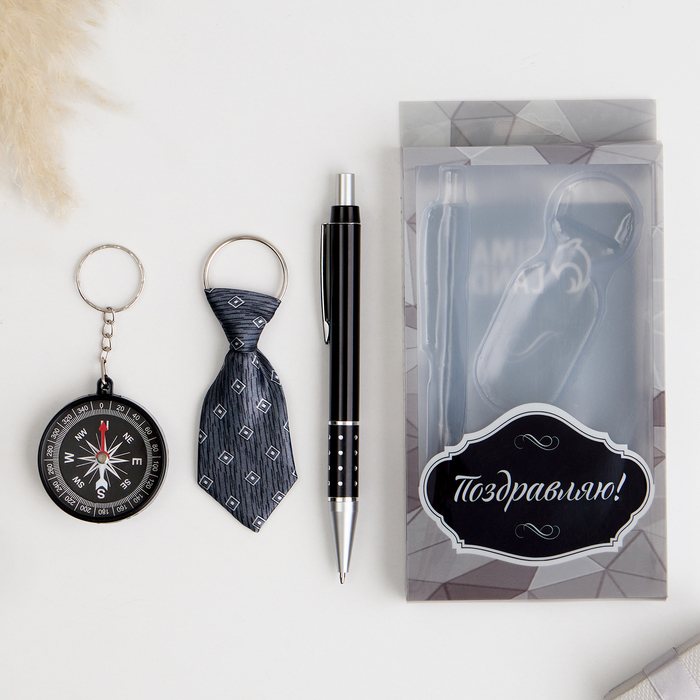 Набор подарочный 3 в 1, ручка, компас, брелок-галстук, МИКС — Характеристики