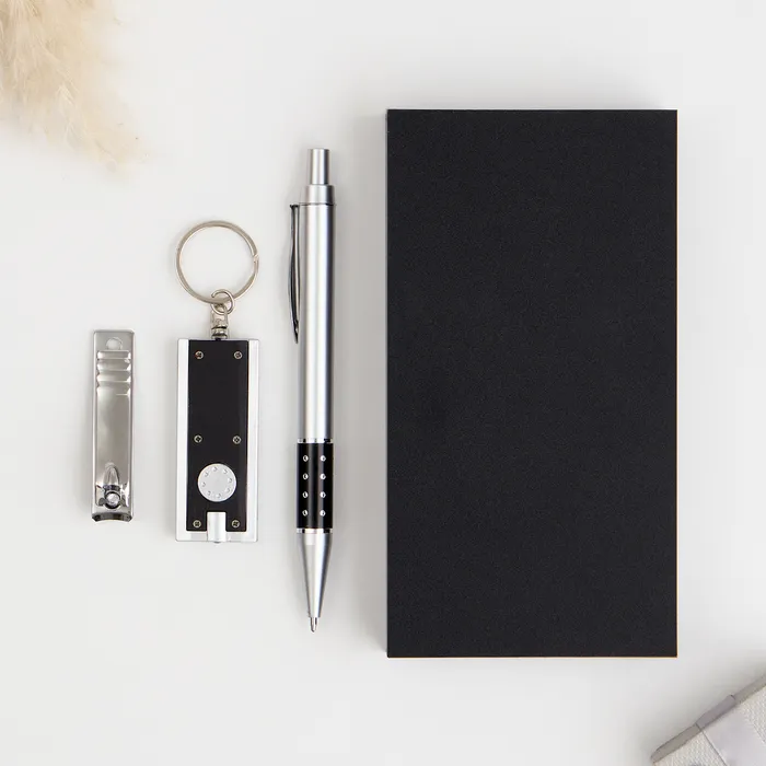 Набор подарочный 3 в 1, ручка, кусачки, фонарик черный — Характеристики