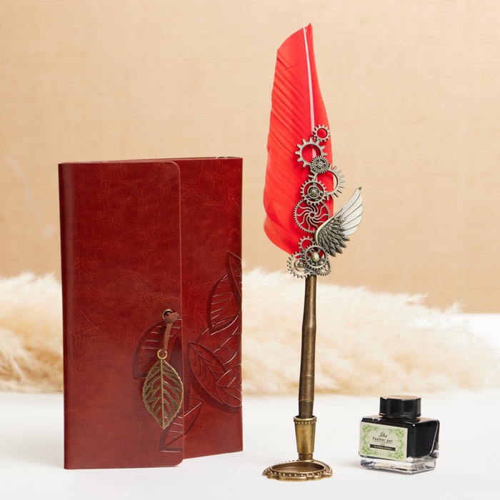 Набор подарочный 4 в 1 «Стимпанк»: блокнот, перьевая ручка красная, чернила, наконечники — Характеристики