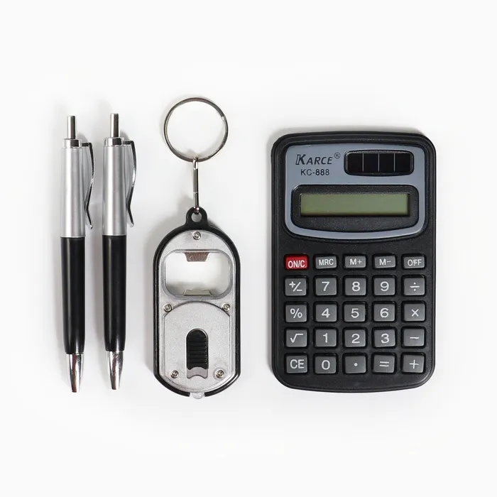 Набор подарочный 4в1 (2 ручки, калькулятор, фонарик с открывалкой) — Характеристики