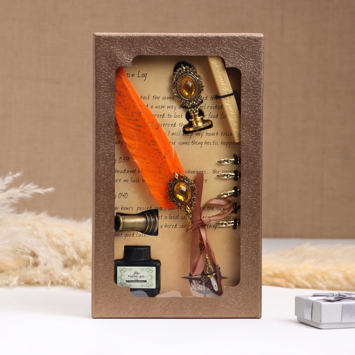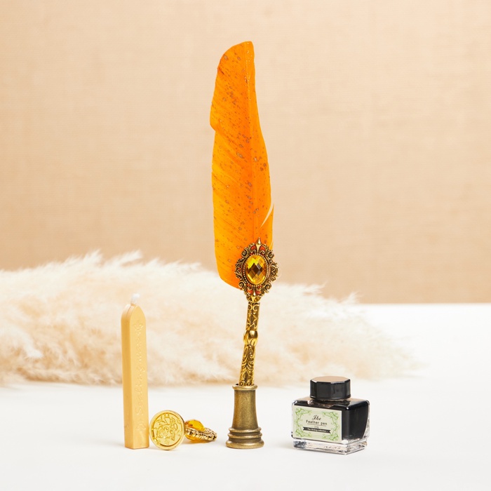 Набор подарочный 5 в 1 «Реликвия»: перьевая ручка оранжевая, чернила, печать, воск — Характеристики