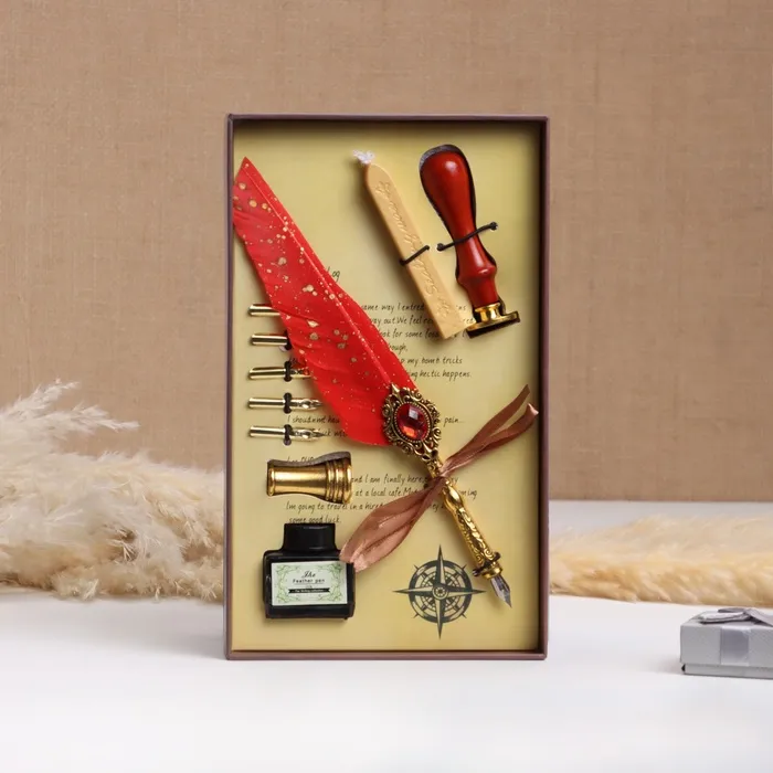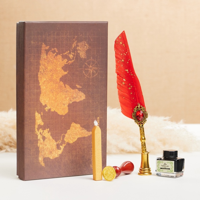 Набор подарочный 5 в 1 «Реликвия», перьевая ручка розовая, чернила, печать, воск — Характеристики