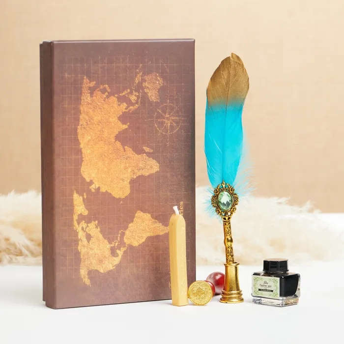 Набор подарочный 5 в 1 «Силенция», перьевая ручка зеленая с золотом, чернила, печать, воск — Характеристики