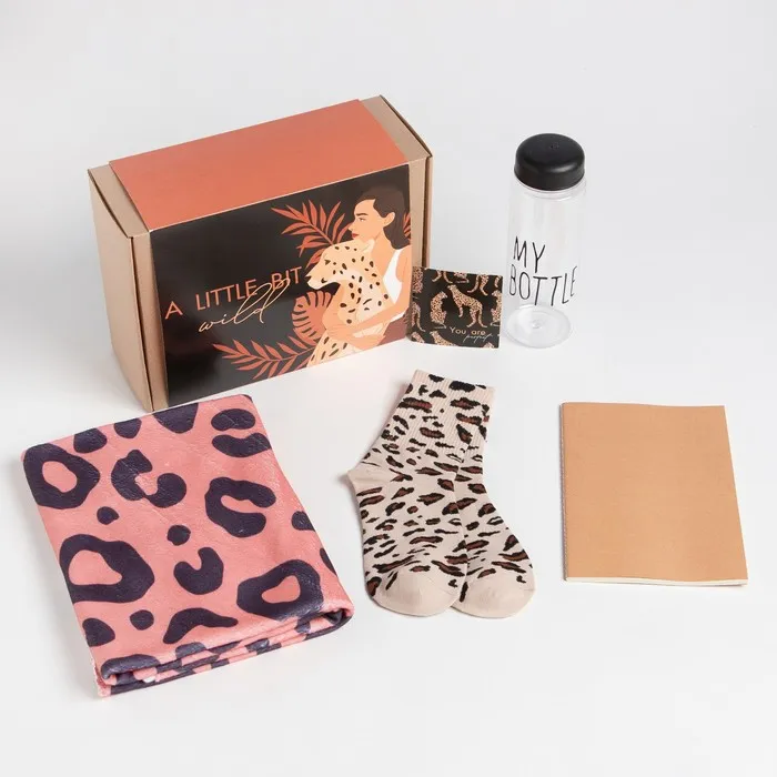 Набор подарочный "A little bit wild" плед, носки, бутылка, блокнот — Характеристики