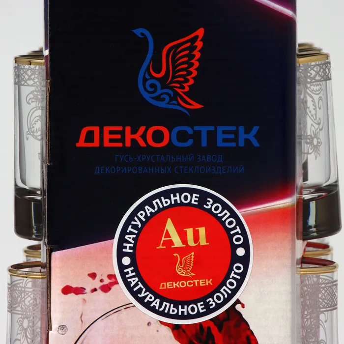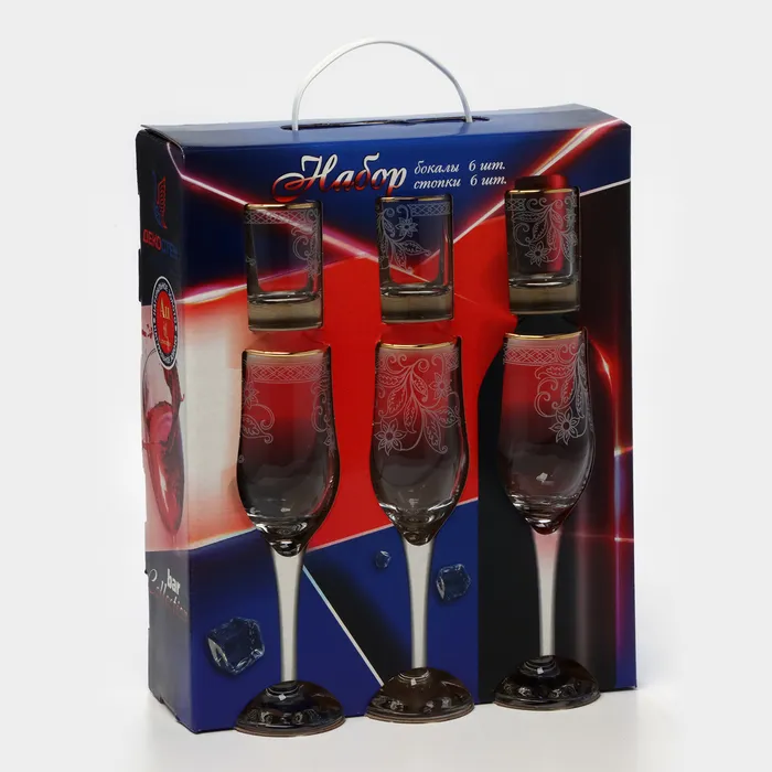 Мягкие и изящные линии рисунка замечательно сочетаются с блеском бокалов и стопок и создают неповторимый эффект. Этот набор станет отличным подарком для тех, кто ценит красоту, изысканность и гармонию во всем. Он также подойдет для оформления свадебного стола или другого торжества.