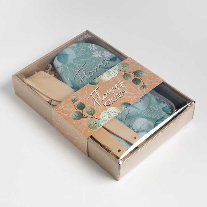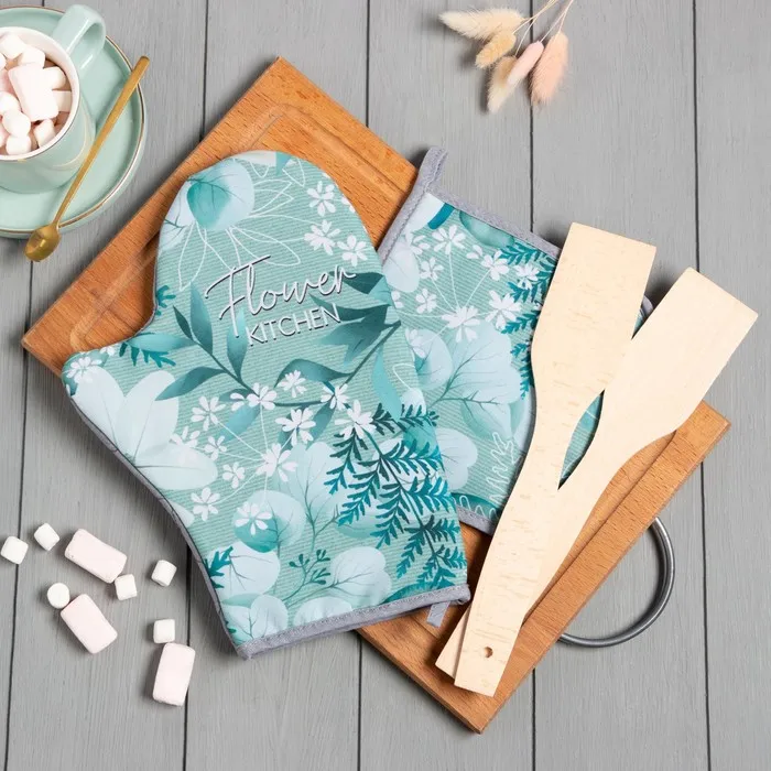 Набор подарочный Доляна Flower kitchen: варежка 20х28 см, прихватка 17х17 см, 2 лопатки — Характеристики