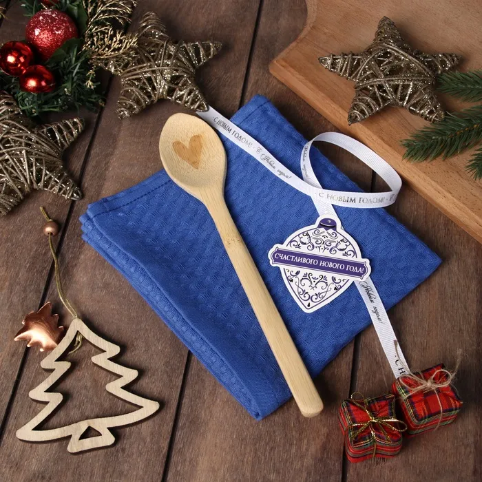 Набор подарочный Доляна Snow: синее полотенце 35×60 см, хл 100%, вафля 220 г/м² — Характеристики