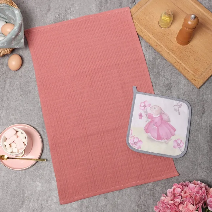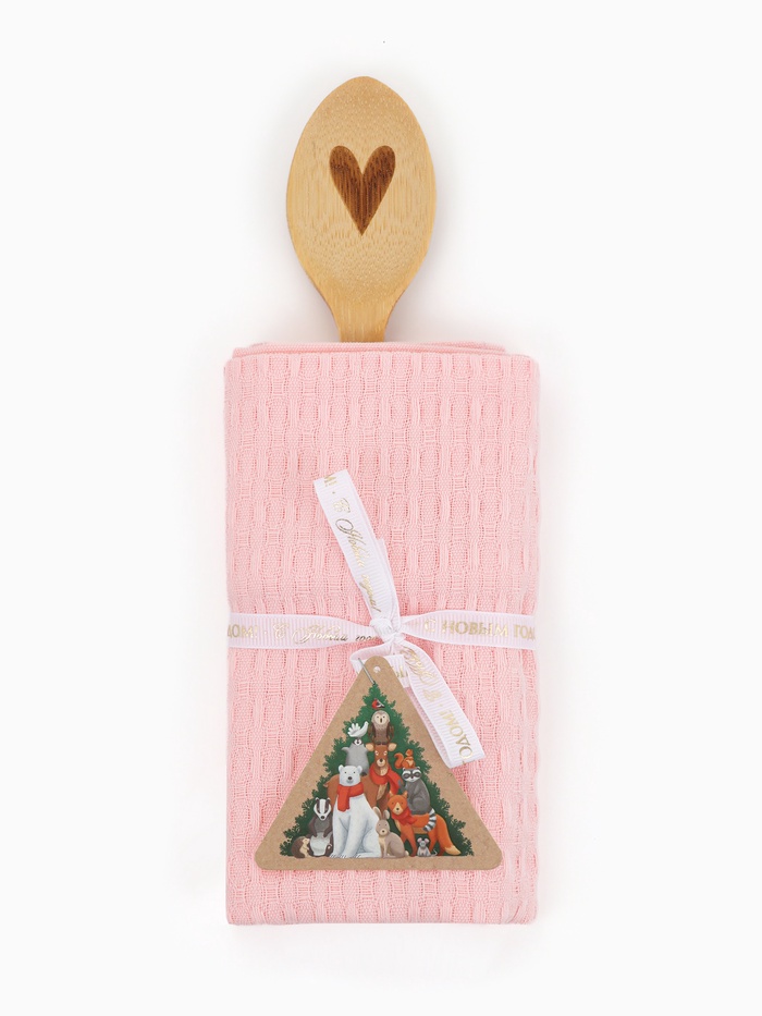 Набор подарочный «Доляна» Winter: розовое полотенце 35×60 см, хлопок 100%, вафля 220 г/м², деревянная ложка — Характеристики