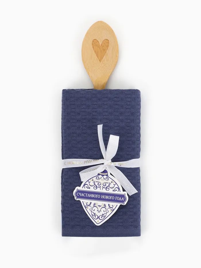 - Комплектация: Полотенце размером 35×60 см и деревянная ложка — готовое решение для сервировки новогоднего стола или упаковки в качестве подарка.