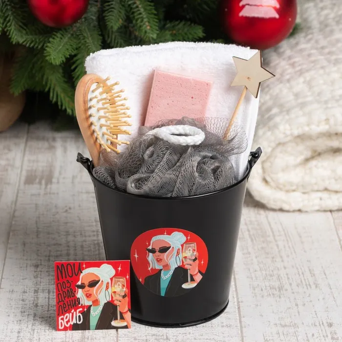 В состав набора входят: Бритвенный станок, Варежка-мочалка, Зубная щётка, Мочалка, Полотенце, Принадлежности для маникюра, Щётка