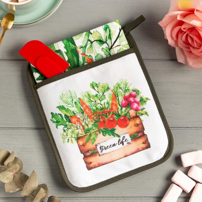 Набор подарочный Green life: прихватка-карман, полотенце, лопатка — Характеристики