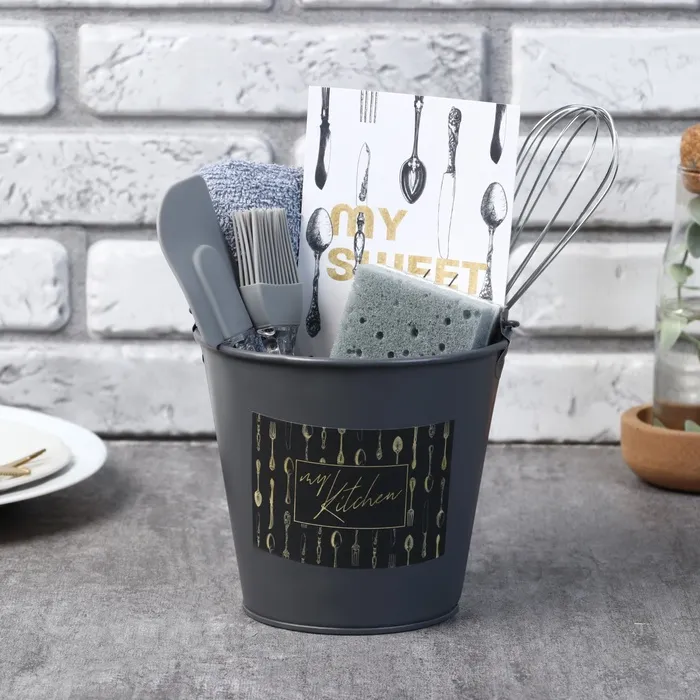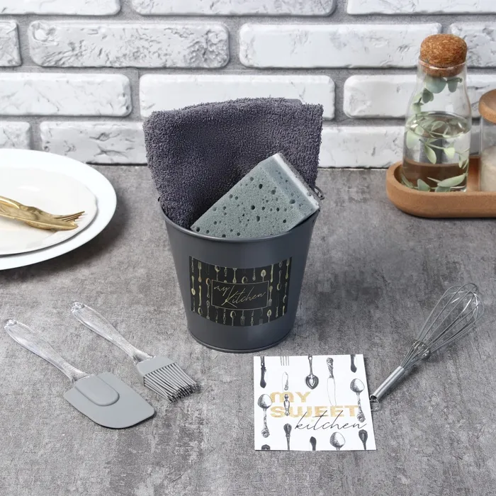 Набор подарочный Kitchen: ведро, полотенце 35х60, лопатка, кисть, венчик,губка — Характеристики