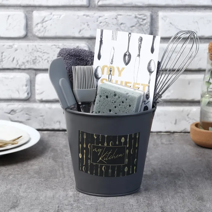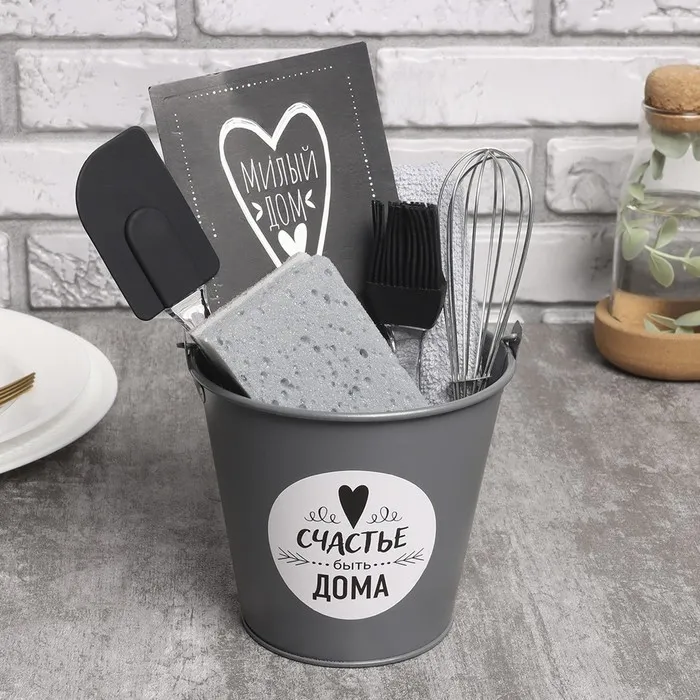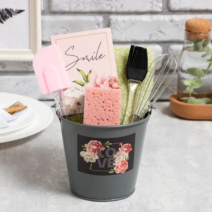 Набор подарочный Made with love: полотенце,варежка-прихватка,кухонная лопатка,венчик,губка — Характеристики
