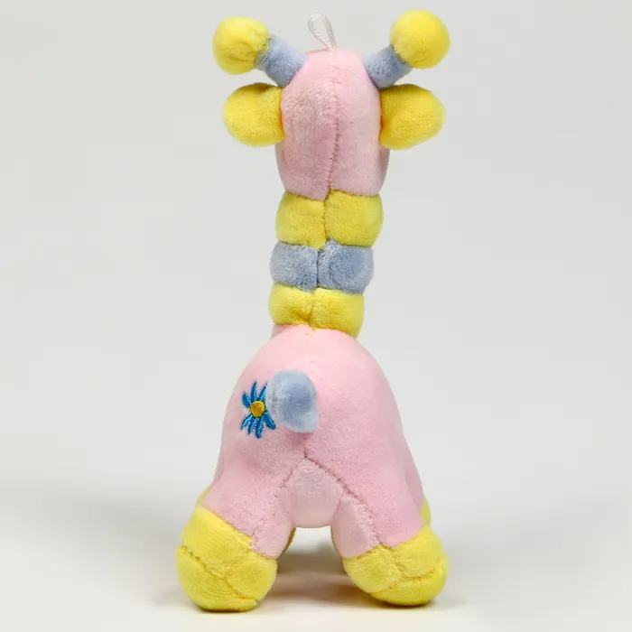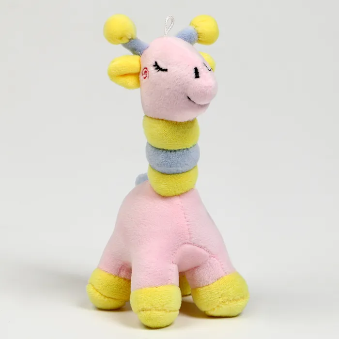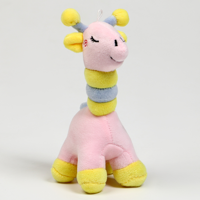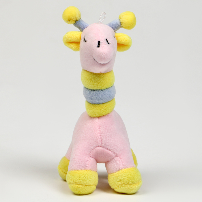 - Мягкий жирафик размером 17 см из приятного на ощупь полиэстера подходит для обнимашек и спокойного сна. Его удобно брать с собой на прогулку или в гости.