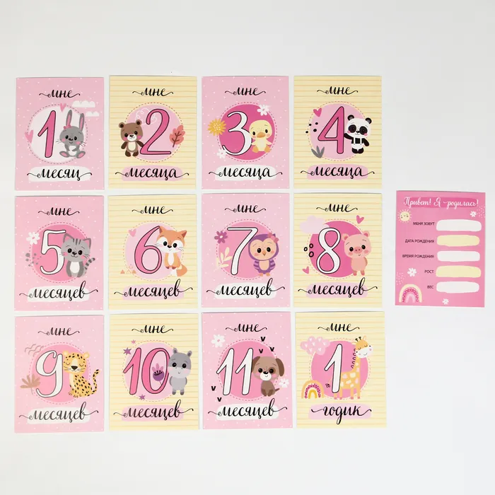 - 12 карточек для фото — запечатлейте первые месяцы жизни и сохраните трогательные моменты роста малыша. Карточки из плотного картона сохранят теплые воспоминания.