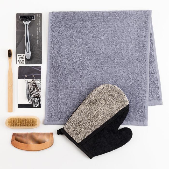 Этот мужской набор в сером цвете — готовый подарок для близкого человека. Всё необходимое для ухода собрано в одной стильной коробке: от махрового полотенца для рук до практичных аксессуаров. Каждый предмет ежедневно напоминает о вашем внимании.