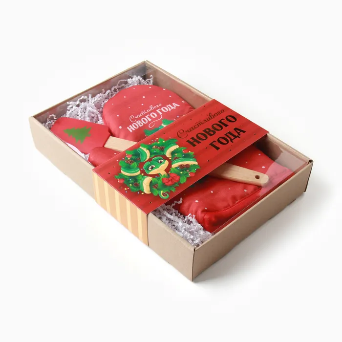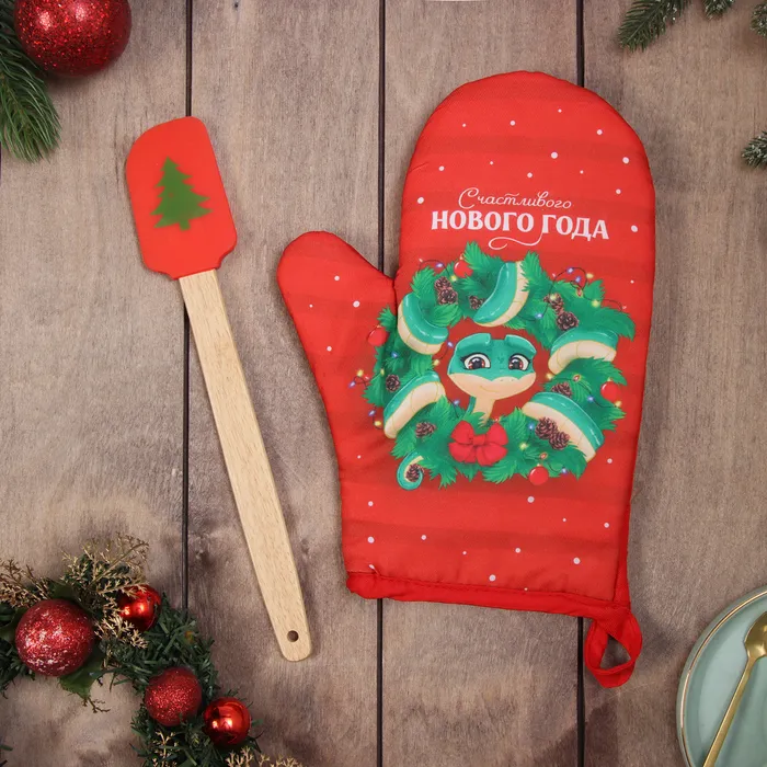 Набор подарочный новогодний Доляна "Символ года": Варежка-прихватка новогодняя, лопатка силикон