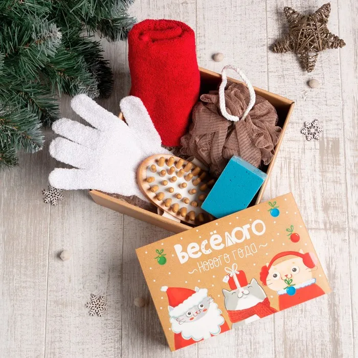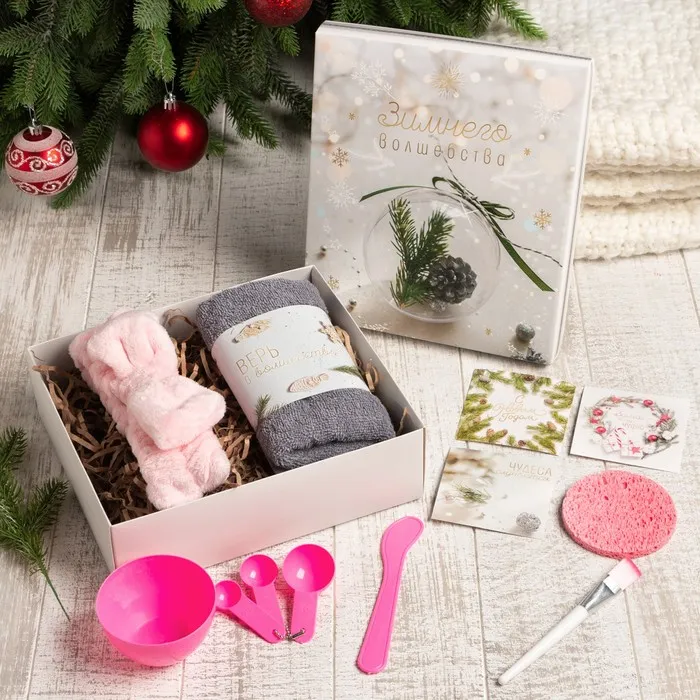 Набор подарочный новогодний "Зимнего волшебства", полотенце и аксессуары (4 предмета) — Характеристики