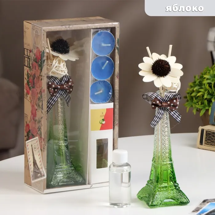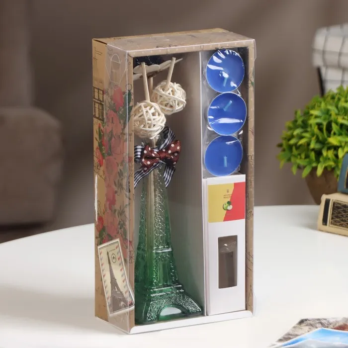 Ощутите волшебство Парижа прямо у себя дома с нашим уникальным набором в стиле Эйфелевой башни. Этот диффузор, выполненный в форме изящного символа Франции, не только наполнит ваш дом уютом, но и придаст ему неповторимый шарм. В комплекте с диффузором вы найдете чайные свечи, создающие приглушенное освещение и добавляющие нотки романтики в атмосферу, а также аромамасло, которое наполнит помещение нежным, умиротворяющим ароматом. Разгрузите свой день и погрузитесь в атмосферу спокойствия и расслабления с нашим набором, который привнесет в вашу жизнь частичку волшебства Парижа.