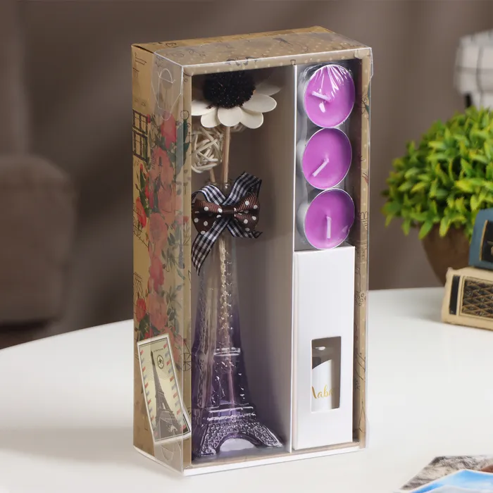 Ощутите волшебство Парижа прямо у себя дома с нашим уникальным набором в стиле Эйфелевой башни. Этот диффузор, выполненный в форме изящного символа Франции, не только наполнит ваш дом уютом, но и придаст ему неповторимый шарм. В комплекте с диффузором вы найдете чайные свечи, создающие приглушенное освещение и добавляющие нотки романтики в атмосферу, а также аромамасло, которое наполнит помещение нежным, умиротворяющим ароматом. Разгрузите свой день и погрузитесь в атмосферу спокойствия и расслабления с нашим набором, который привнесет в вашу жизнь частичку волшебства Парижа.