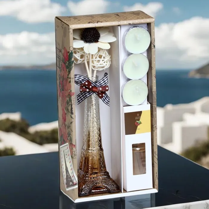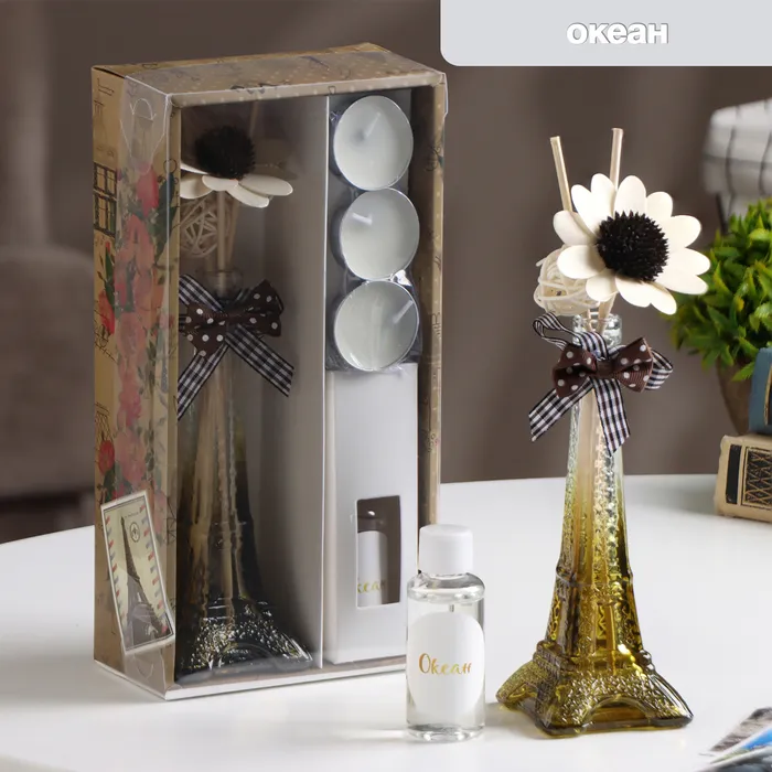Ощутите волшебство Парижа прямо у себя дома с нашим уникальным набором в стиле Эйфелевой башни. Этот диффузор, выполненный в форме изящного символа Франции, не только наполнит ваш дом уютом, но и придаст ему неповторимый шарм. В комплекте с диффузором вы найдете чайные свечи, создающие приглушенное освещение и добавляющие нотки романтики в атмосферу, а также аромамасло, которое наполнит помещение нежным, умиротворяющим ароматом. Разгрузите свой день и погрузитесь в атмосферу спокойствия и расслабления с нашим набором, который привнесет в вашу жизнь частичку волшебства Парижа.