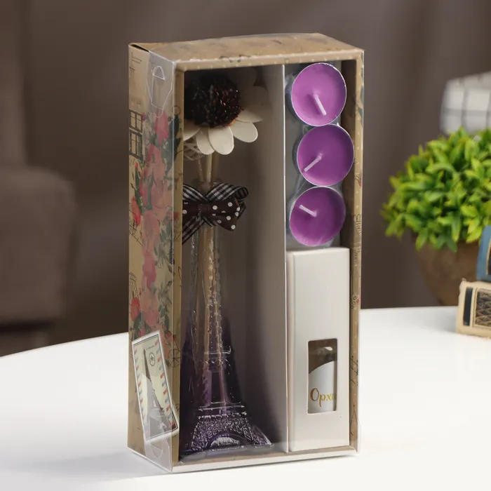 Ощутите волшебство Парижа прямо у себя дома с нашим уникальным набором в стиле Эйфелевой башни. Этот диффузор, выполненный в форме изящного символа Франции, не только наполнит ваш дом уютом, но и придаст ему неповторимый шарм. В комплекте с диффузором вы найдете чайные свечи, создающие приглушенное освещение и добавляющие нотки романтики в атмосферу, а также аромамасло, которое наполнит помещение нежным, умиротворяющим ароматом. Разгрузите свой день и погрузитесь в атмосферу спокойствия и расслабления с нашим набором, который привнесет в вашу жизнь частичку волшебства Парижа.