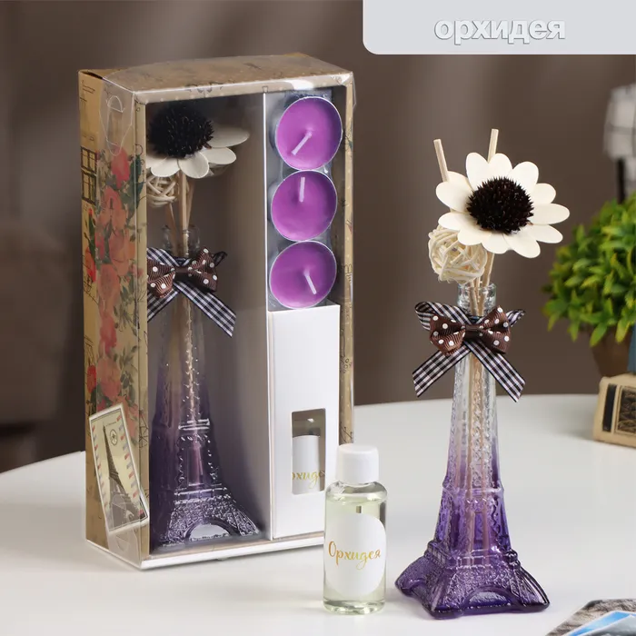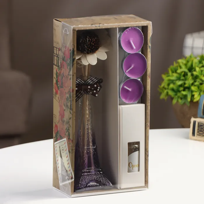 Ощутите волшебство Парижа прямо у себя дома с нашим уникальным набором в стиле Эйфелевой башни. Этот диффузор, выполненный в форме изящного символа Франции, не только наполнит ваш дом уютом, но и придаст ему неповторимый шарм. В комплекте с диффузором вы найдете чайные свечи, создающие приглушенное освещение и добавляющие нотки романтики в атмосферу, а также аромамасло, которое наполнит помещение нежным, умиротворяющим ароматом. Разгрузите свой день и погрузитесь в атмосферу спокойствия и расслабления с нашим набором, который привнесет в вашу жизнь частичку волшебства Парижа.