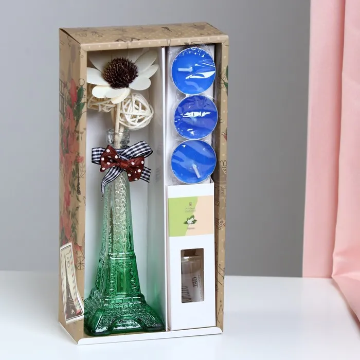 Ощутите волшебство Парижа прямо у себя дома с нашим уникальным набором в стиле Эйфелевой башни. Этот диффузор, выполненный в форме изящного символа Франции, не только наполнит ваш дом уютом, но и придаст ему неповторимый шарм. В комплекте с диффузором вы найдете чайные свечи, создающие приглушенное освещение и добавляющие нотки романтики в атмосферу, а также аромамасло, которое наполнит помещение нежным, умиротворяющим ароматом. Разгрузите свой день и погрузитесь в атмосферу спокойствия и расслабления с нашим набором, который привнесет в вашу жизнь частичку волшебства Парижа.