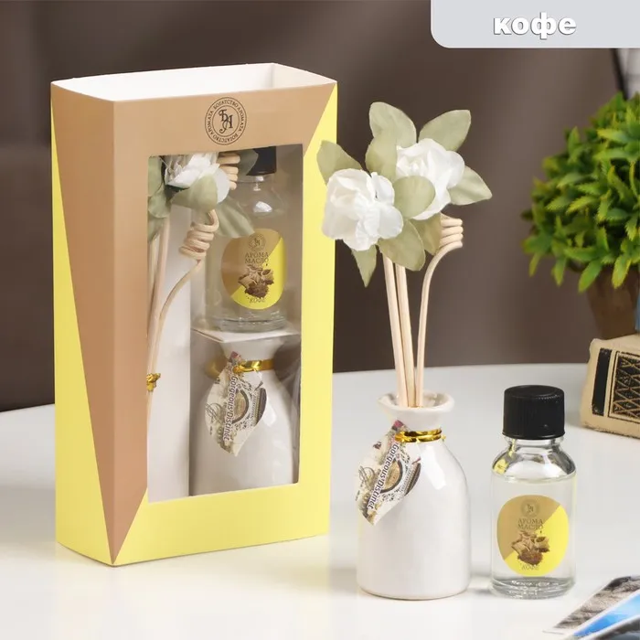 Набор подарочный с диффузором "Ваза с цветком", аромат кофе, "Богатство Аромата" — Характеристики