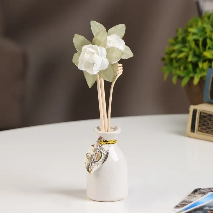 Погрузитесь в атмосферу уюта и роскоши с нашим набором подарочным 'Ваза с Цветком'. Этот изысканный набор сочетает в себе элегантный диффузор, стилизованный под вазу с прекрасным цветком, и ароматическое масло, чтобы ваш дом всегда наполнялся нежным ароматом. Просто добавьте несколько капель масла в диффузор, и он будет распространять приятный аромат, создавая атмосферу спокойствия и комфорта. Этот набор идеально подходит для подарка вашим близким и друзьям, делая их дни еще более особенными и приятными.