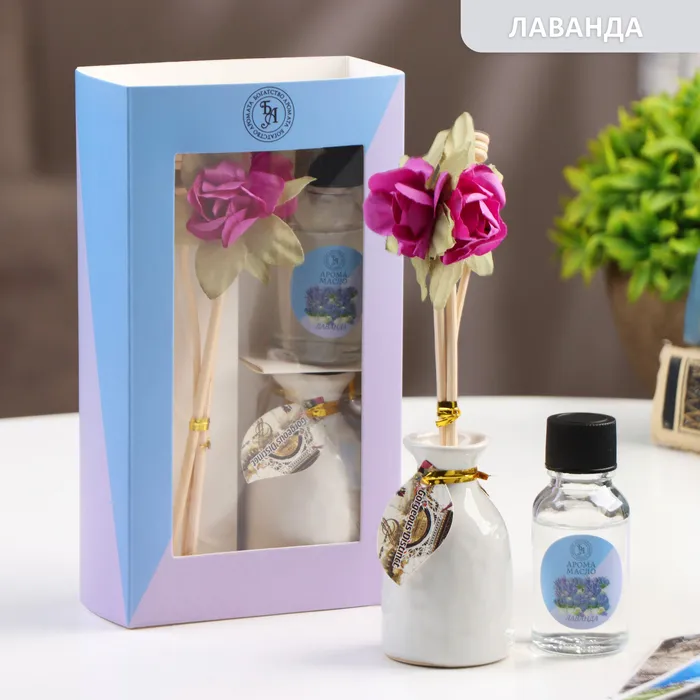 Набор подарочный с диффузором "Ваза с цветком" лаванда, "Богатство Аромата" — Характеристики