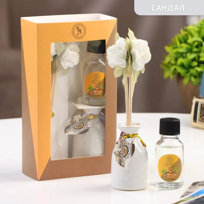 Набор подарочный с диффузором "Ваза с цветком" сандал, "Богатство Аромата" — Характеристики