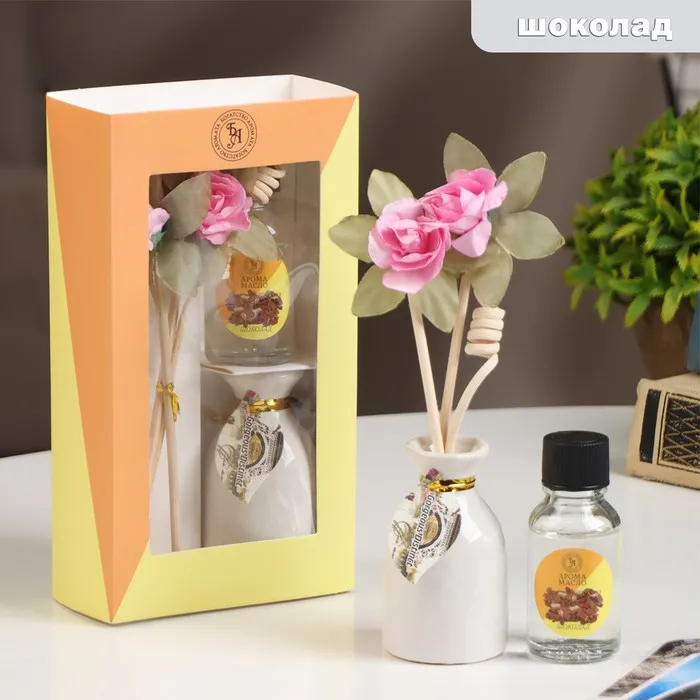 Набор подарочный с диффузором "Ваза с цветком" шоколад, "Богатство Аромата" — Характеристики