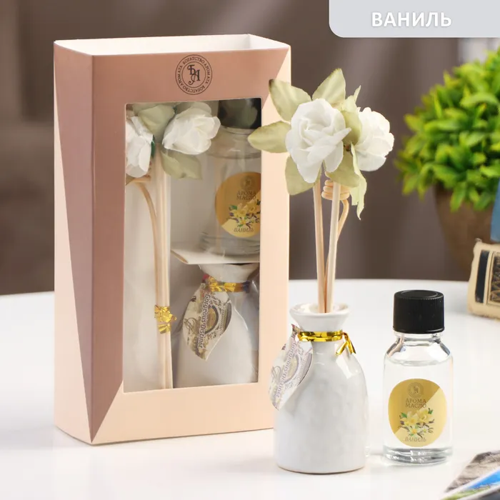 Набор подарочный с диффузором "Ваза с цветком" ваниль, "Богатство Аромата" — Характеристики