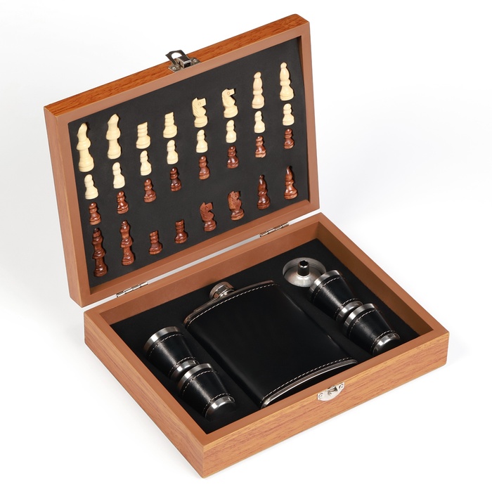 Набор подарочный «Шахматы и фляжка» 7 в 1, металл и искусственная кожа — Характеристики