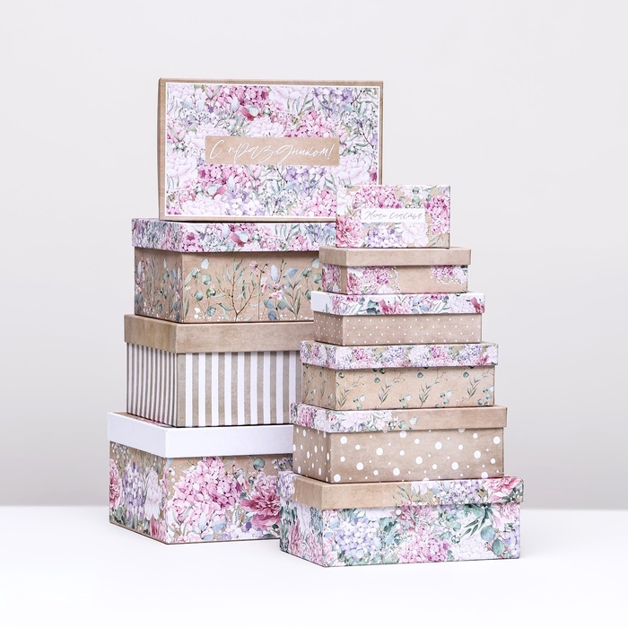 Набор подарочных коробок 10 в 1 «Поздравляю!», 32.5×20×12.5 - 12×7×4 (± 1) см — Характеристики