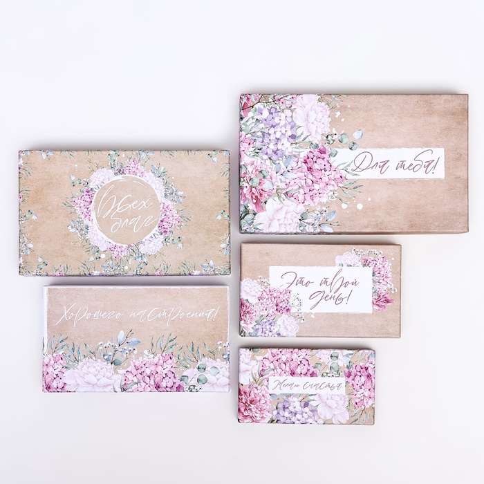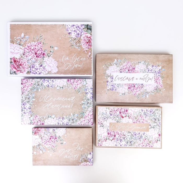Набор коробок универсальный. Изготовлена из плотного картона. Прекрасно подойдет для оформления подарка, и праздничного декора. Можно использовать для хранения аксессуаров.