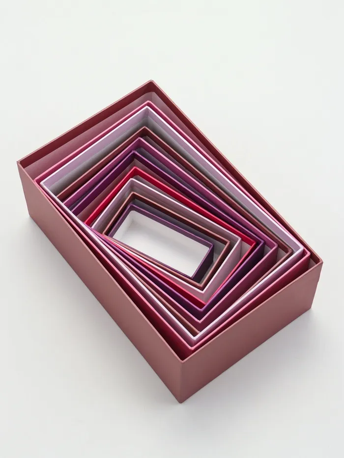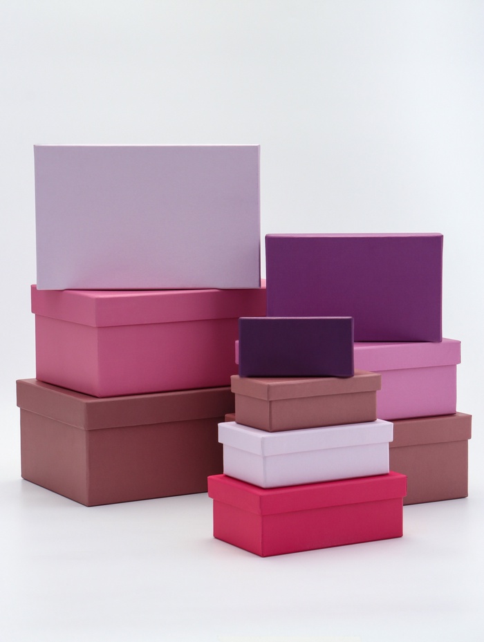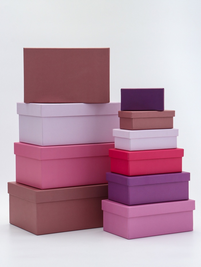 - Прочность и аккуратный вид: Плотный картон (900 г/м²) сохраняет геометрию коробок даже при хранении. Они не мнутся, крышки плотно прилегают — подарок выглядит собранным и продуманным.