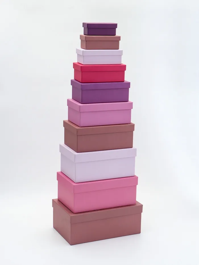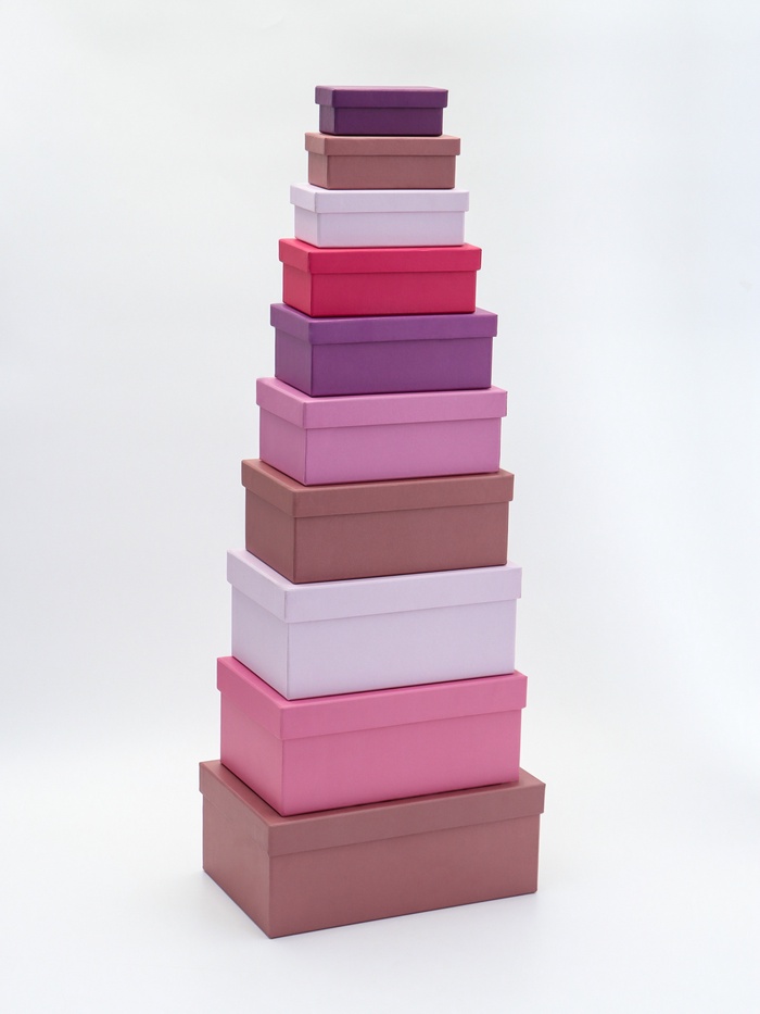 Упакуйте праздник в идеальную форму! Набор подарочных коробок «Радость» — это практичный комплект для тех, кто ценит красоту и порядок в деталях. Десять коробок разного размера решают задачу упаковки большинства стандартных подарков — от косметики и парфюмов до книг и аксессуаров.